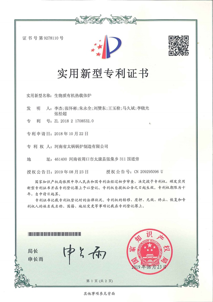 • 生物質(zhì)有機熱載體爐專利