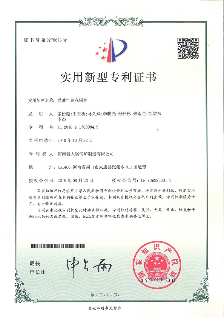 • 燃油氣蒸汽鍋爐專利