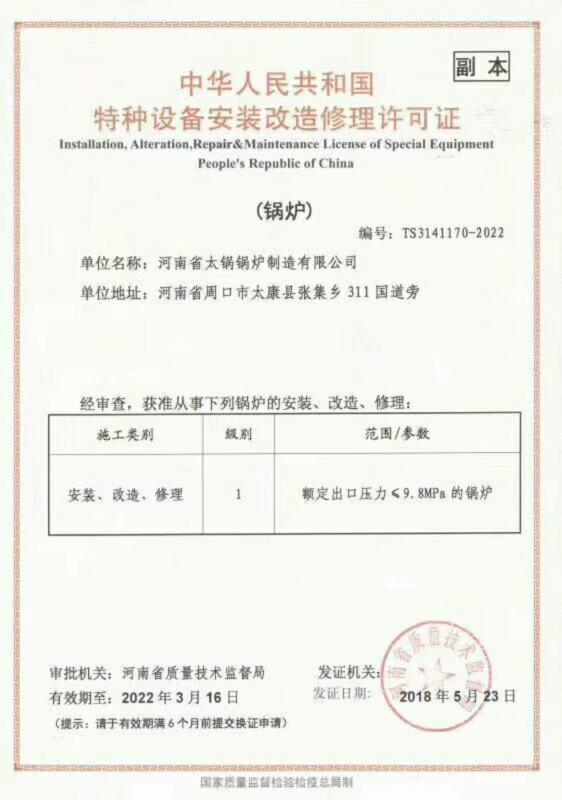 • 特種設(shè)備安裝,改造,維修許可證